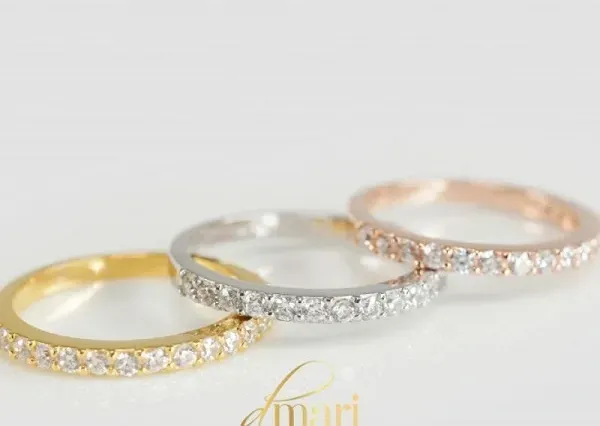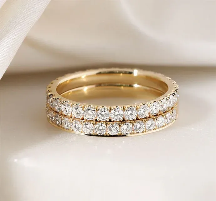 - Nhẫn cưới Eternity: Dòng nhẫn đính kim cương tấm toàn bộ vòng nhẫn, tượng trưng cho tình yêu không có hồi kết.