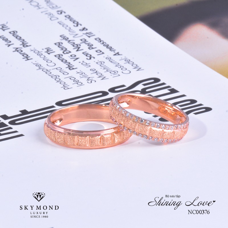 Thay vì “nhân bản” những cặp nhẫn cưới vàng tròn trơn truyền thống, Skymond Luxury mang tới sự hào hứng khi phối Platin với Vàng hồng để hoàn thiện vẻ thanh lịch đầy ngọt ngào, kết đôi Platin với Vàng vàng để giảm bớt sự nặng nề của tông màu này cũng như mang tới hơi thở hiện đại hơn.